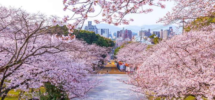 菊池公園是熊本縣內數一數二的賞櫻勝地!園內約有3000棵櫻花樹沿著小山丘綻放,俯瞰整個菊池市形成壯麗的春日美景。這裡的櫻花種類豐富,包括染井吉野與山櫻,更有罕見的「墨染櫻」,其花朵可同時綻放單瓣與重瓣花,極具特色!