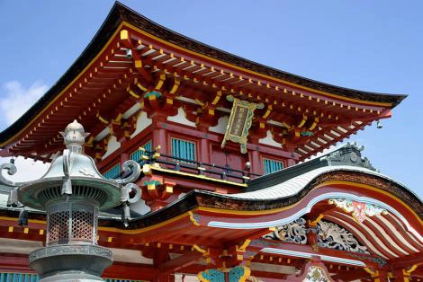 櫛田神社是博多的守護神,被當地人親切地稱為「奧櫛田先生」。這座神社自古以來就被視為青春永駐、長壽、生意興隆之神而深受人們崇拜。據說是從伊勢松的櫛田神社募集而來,現在的神社建築是豐臣秀吉重建博多時建造的。