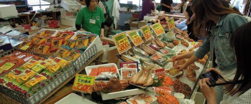 日本三大早市之一,這裡匯集了販賣生鮮、乾貨和蔬菜等各類食材250多家店鋪,主要銷售剛上岸的墨魚、螃蟹、花魚等各種海鮮,還出售近郊採來的果菜,如北海道有名的哈蜜瓜,每天早晨都相當熱鬧。這裡也被稱為函館市民的後廚房。
