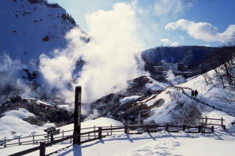 是一座形成於萬年前的火山口遺跡,至今仍散發著強烈硫磺味與瀰漫濃煙,就像身處地獄般迷幻而得名,周邊茂密的原始森林四季多彩,孕育出的溫泉也十分著名,春日百花齊放、秋季則化身賞楓勝地,是北海道備受歡迎的名景。