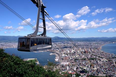 《函館山》海拔334公尺、位於山頂的展望台,是眺望函館市景的最佳地點,白天可把津輕海峽的風光盡收眼底,夜晚則可飽覽猶如寶石散落的璀璨大地,不僅享有「百萬夜景」的美譽,更榮登「日本三大夜景」的寶座。