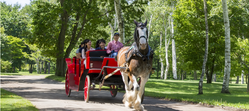 《北國優駿公園》擁有專業完整的賽馬會場及設備,不僅推動騎馬文化發展,也讓一般遊客能近距離接觸馬匹,像是搭乘馬車、騎馬等,公園占地寬廣,夏季可騎乘單車穿梭林間小路;冬天則有雪地車、雪上泛舟等雪上活動。